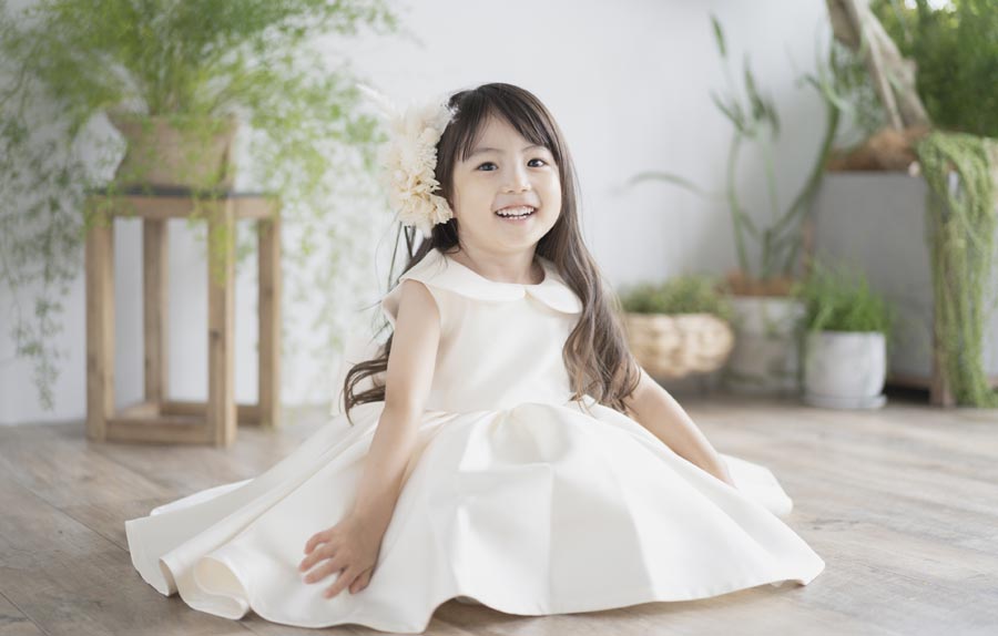 A15 3歳はお子様のナチュラルな表情を撮影させて頂いているので、メイクは行っておりません。7歳はリップ・アイシャドウ・チークなどの簡単なワンポイントメイクをさせていただきます。(ファンデーション、マスカラなどは使用しておりません。)